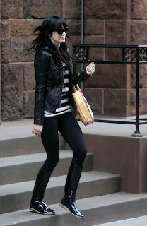 Audrina Patridge, campera, botas y una valija de Louis Vuitton. Blake Lively, otra Gossip Girl que marca tendecia, calzas de cuero.