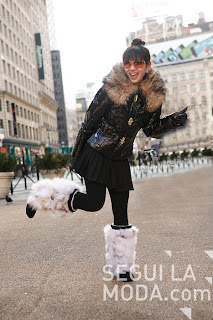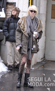 El look de Leighton Meester, mientras llega al set de grabación, ya lista con el outfit, pero para cubrirse del frío prefirió dejar los zapatos y calzarse unas botitas tipo Ugg. Si bien no es el look terminado, no por eso menos imitable. ¿Te gusta?