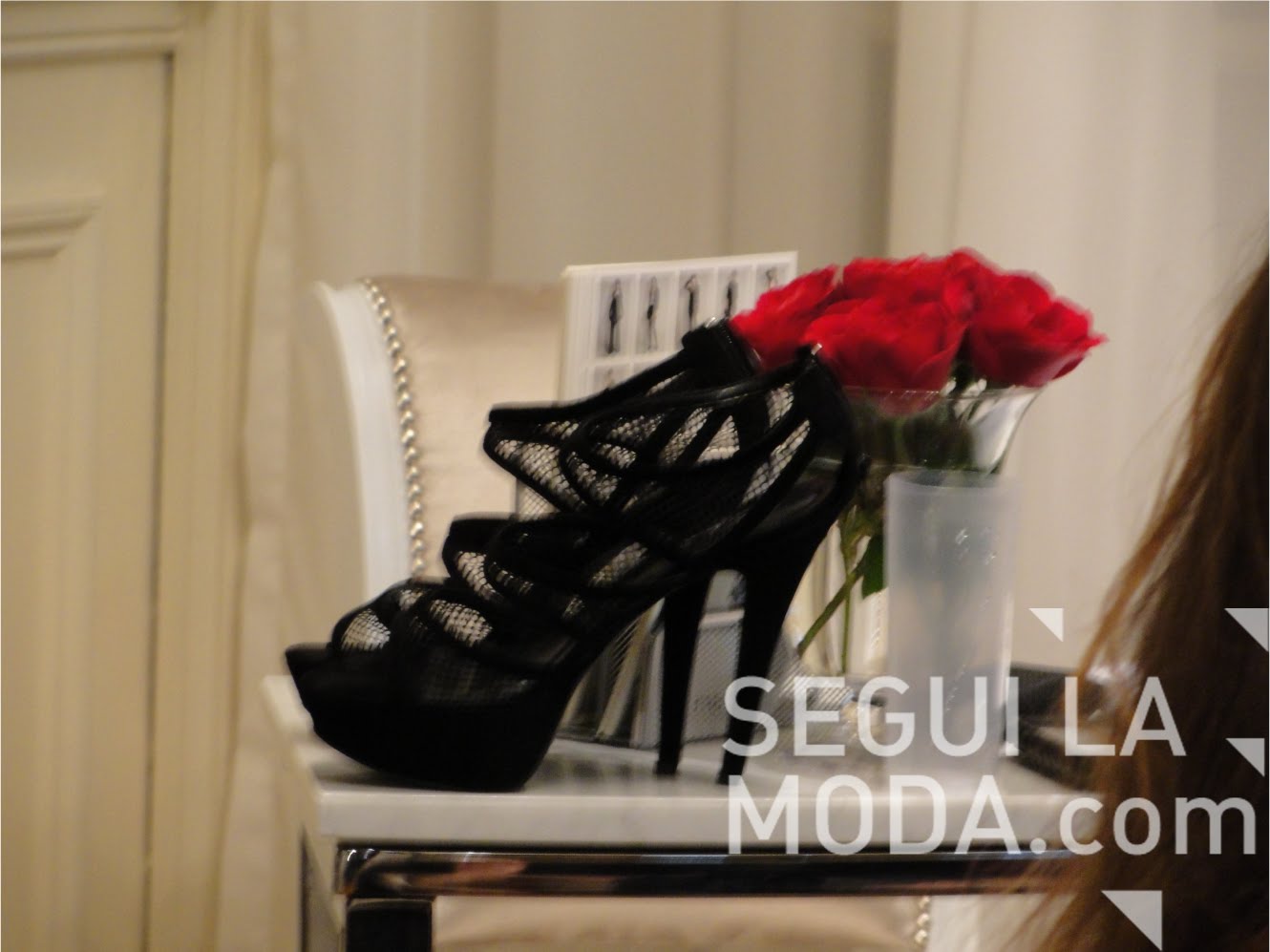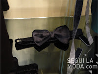 Accesorios a tono con la colección. Los moños están bien presentes para el pelo y la cintura. Ayudan a coplementar los looks delicados de las creaciones de la diseñadora.