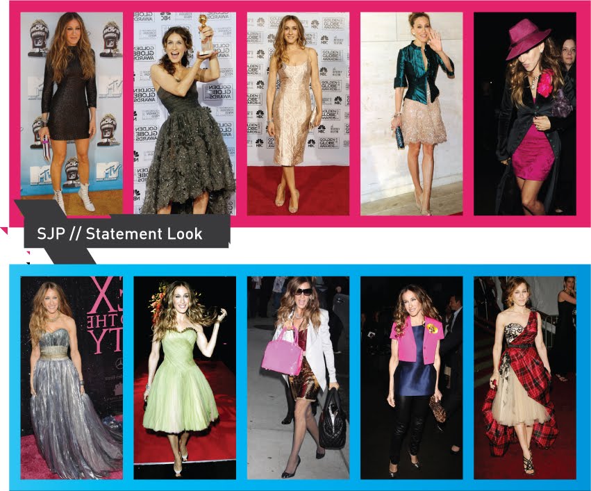 Aprendiendo de los estilismos que le impuso Patricia Field en Sex and the City, la actriz supo hacerse de un camino en la moda y marcando tendencias en cada paso. Aunque no tan extravagante como su personaje de ficción, SJP se da ciertos lujos. Como un vestido escocés de McQueen, el gris oscuro de Chanel, en fucsia fever de L’Wren Scott, o con statement bags como este hot pink Diane de Maria satchel, un traje en verde de L’Wren Scott, accesorios maximizados, entre otros.