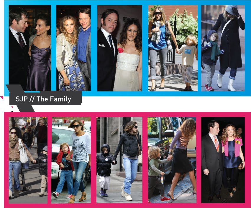 Dividida entre la realidad de Sarah y la ficcionalidad de su personaje Carrie, en SATC, con estilos cada vez más similares, la actriz separa su tiempo familiar de su vida de celebrity. Madre de 3, un varón, James Wilke Broderick (7) y dos mellisas, Marion Loretta Elwell y Tabitha Hodge (nacidas en junio del 2009), casada desde el 97 con el actor Matthew Broderick, y fana de Obama, SJP elige cuidadosamente cada uno de sus estilos.