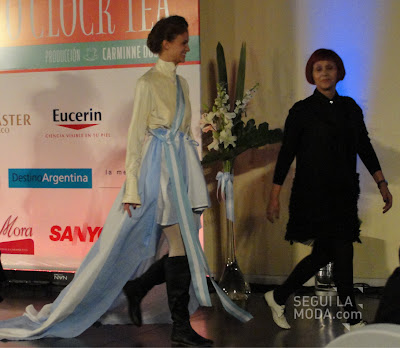 Carminne Dodero con una creación de Pia Carregal fue la conductora y organizadora de esta fiesta de la moda.