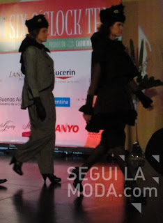 Casa Visentini llego con sus modelos a cara tapada por los sombreritos. Los vestidos en raso y lamé, con detalles en plateado. Combinación blanco y negro, toques de piel, y anteojos.