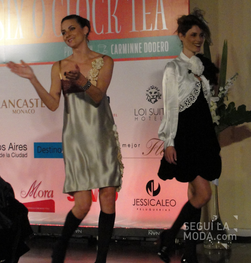 Carminne Dodero con una creación de Pia Carregal fue la conductora y organizadora de esta fiesta de la moda.