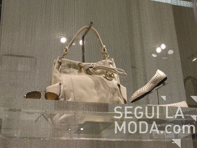 Otra boutique en Bal Harbour se animó a combinar cuero blanco con arpillera y plata.