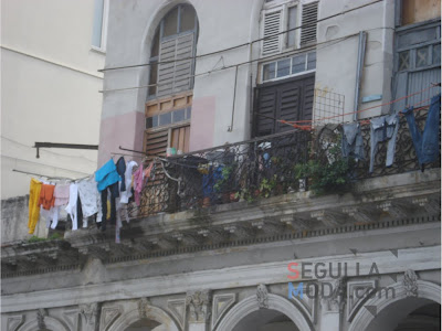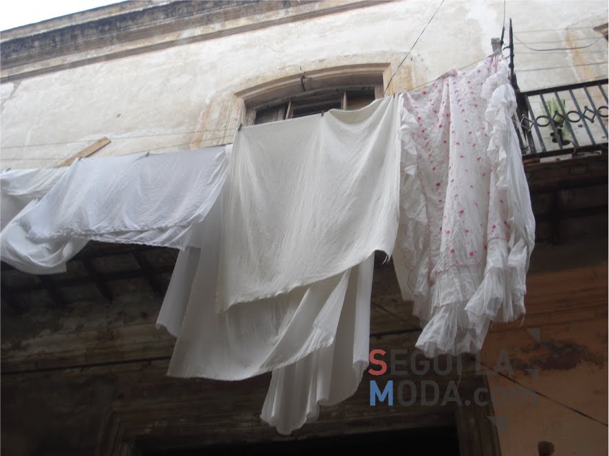 Desde los balcones de edificios coloniales no cuelgan banderas, sino ropa de cama. Es que no hay «tenders» ni secarropas para las mujeres cubanas.