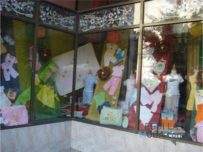 Las vidrieras acumulan prendas, tanto de chicos como de adultos.