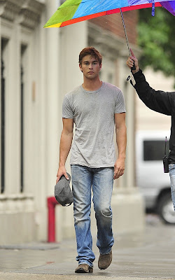También anduvo por el set, con cara de aburrido, Chace Crawford, look relax de eans lavados, remera gris y gorrita en mano. Mientras Leighton se paseaba en Havaianas y bata nuevamente.