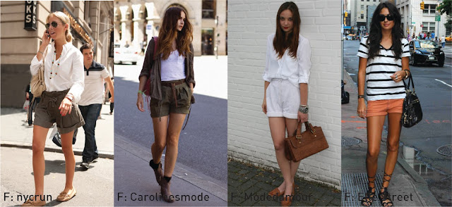 Desde el lente de los cazadores de tendencia internacionales vemos llegar los shorts tipo safari en verde militar, a combinar a gusto con sandalias o botitas. También los shorts de jogging, con camisa blanca y oxfords en los pies, una combinación impensable pero que llega bárbaro desde la foto. ¿Te animarías? El look marinero con shorts color anaranjado, con gladiadoras que trepan hasta la mediapierna.