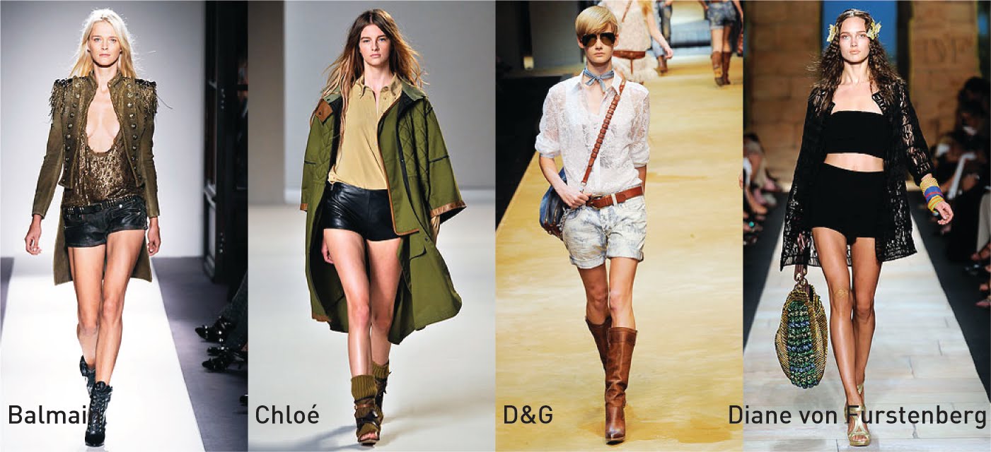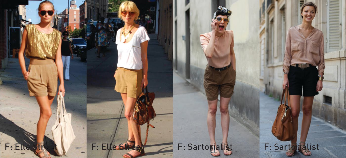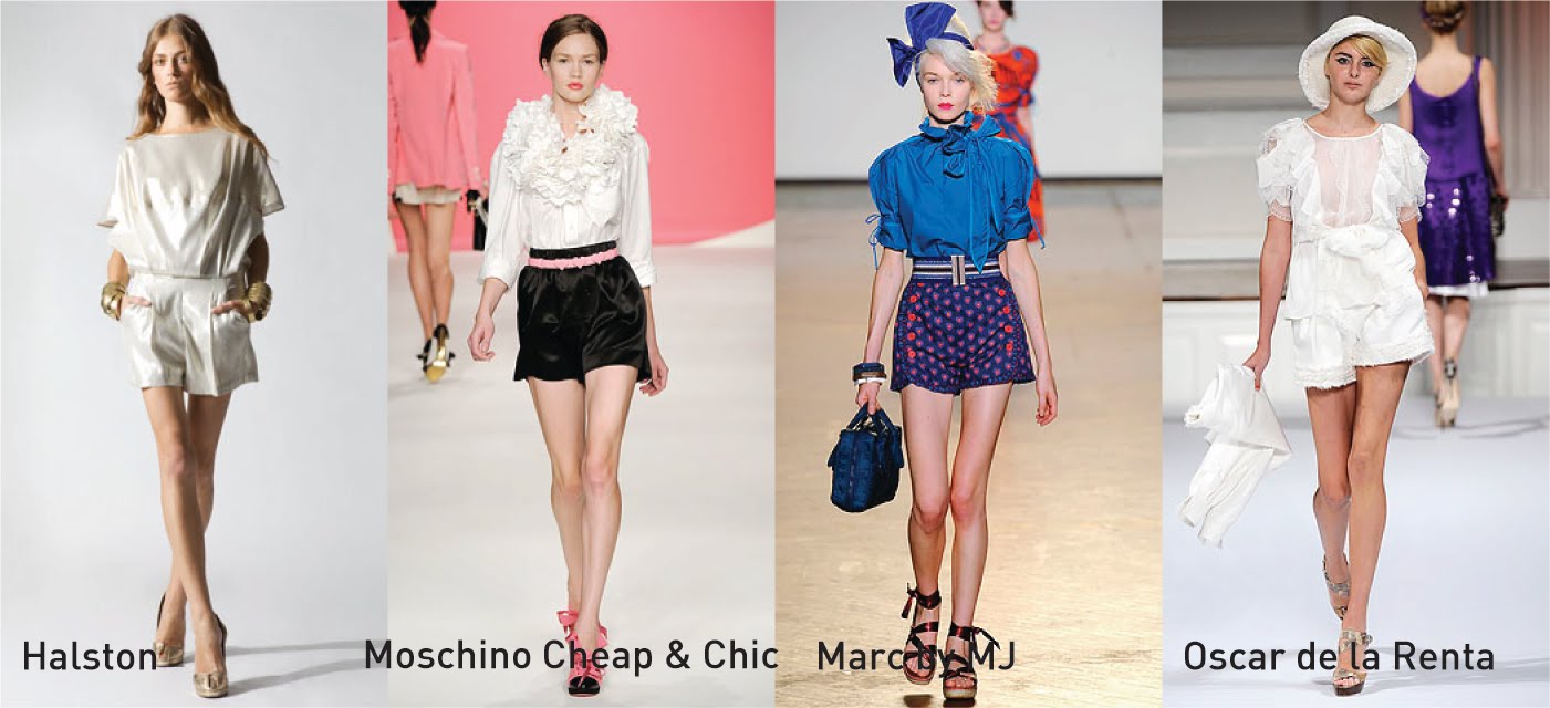 Desde minishorts en cuero hasta pantaloncitos de seda, pasando por monoshorts, trajecitos, de tiro alto, al cuerpo, súper amplios, de jeans oscuros o lavados, gamuzados, lisos o estampados, con pinzas, plisados y con los bolsillos afuera. Se usan mix & match con camisas, trajes, remeras, tapados largos o bandeau, chalecos, vinchas con moño y gorritos.
