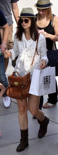 Elgantísima con JBrand jeans negros, remera nude con brillos y cartera de Lanvin, o con shorts, relajada de shopping, zapatos de Madewell y la cartera Alexa de Mulberry.