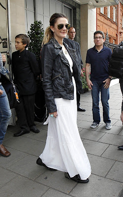 La actriz de 35 años sabe llevar las chaquetas de cuero. Aprovechó los paseos con su pareja Justin Long para lucir un look de día, de vestido blanco y chaqueta de cuero negro con tachas, de AllSaints Owain, y para la noche una remera desteñida de Current/Elliot, jeans de IRO y otra camperita (esta vez más corta) de AllSaint Owain.