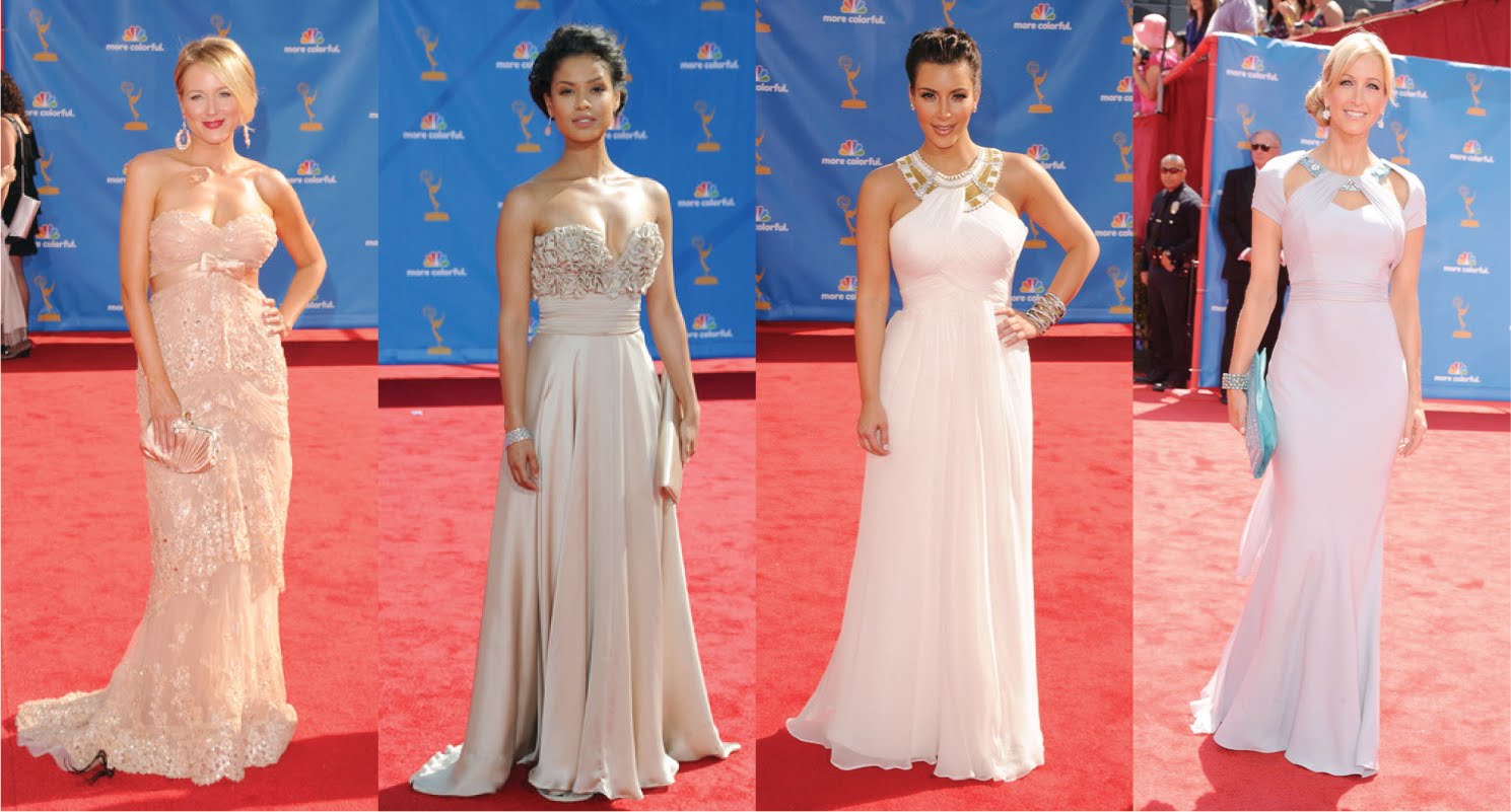 Décolletage y cinturas marcadas. La cantante Jewel eligió un vestido rosado con encajes de Zuhair Murad, Gugu Mbatha-Raw eligió el color beige con escote corazón, Kim Kardashian prefirió un Marchesa de seda blanco, mientras que la presentadora Lara Spencer eligió al diseñador argentino Gustavo Cadile.