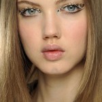 Los brillos fueron el complemento más visto en las pasarelas internacionales. En ojos con apliques o sombras minerales, y también en las uñas. También, sombras doradas que recubren el párpado o solo un delineado metalizado.