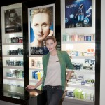 Con jeans oscuros y un blazer verde, Ivana Saccani probó lo nuevo de Blue Therapy de Biotherm.