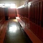 Fotografiados por el modelo argentino Federico Moyano, un grupo de cuatro modelos posan al borde de la pileta mientras disfrutan de una tarde de sol. Momentos antes, una de las parejas vivía un intenso romance en el vestuario de mujeres, un espacio retro con paneles de madera pintados de rosado.