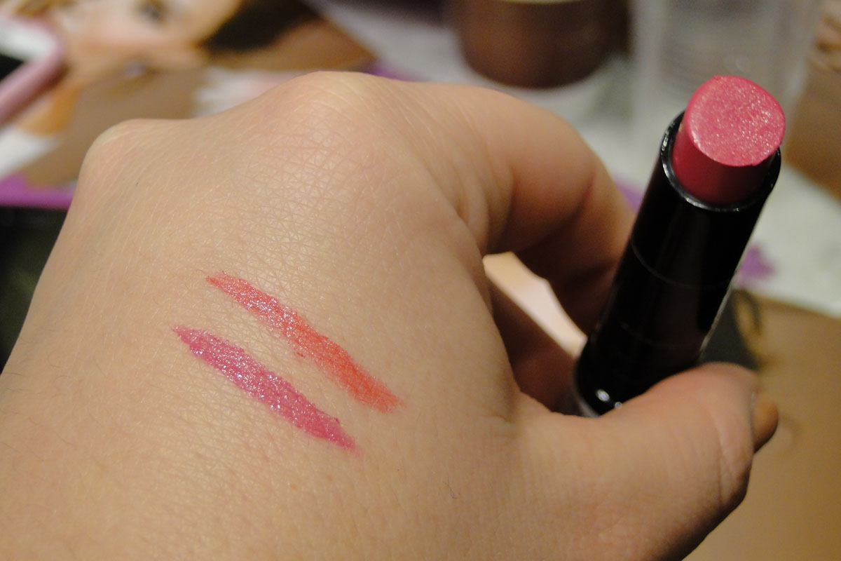 Swatches de Rosy y Raspberry de Bobbi Brown