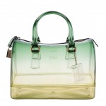 Furla tiene una nueva Candy Bag en un verde que vira al amarillo. Este best-seller de la marca llega reversionado inspirado en las olas de la playa, y es de PVC transparente.