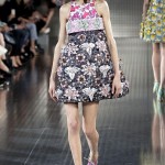 Una diosa de las estampas ópticas y florales, en contrastes y con volúmenes, sobre vestidos y pantsuits. La diseñadora combina looks en un mix-and-match hasta en los zapatos. Los vestidos strapless desdibujan la silueta pero dejan las piernas al descubierto. Su exceso apasionado de información sobre las prendas se conjuga con looks beauty bien naturales: pelo al viento y labiales de tinte oscuro.