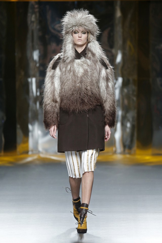 Pensando en muchas épocas del pasado, Raf Simons dividió su desfile en 8 etapas que saltean siglos, que pasan por siluetas de Marie Antoinette hasta trajes de astronauta y maxi tapados que imponen. Todo sin perder la modernidad de una colección couture que acorta las faldas y contrasta negro con amarillo, y calzados de punta extrema, sin miedo.