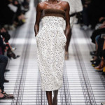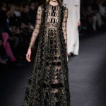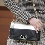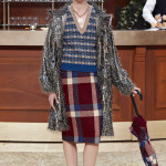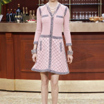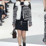 La Brasserie Gabrielle se creó en el Grand Palais, con mesas, mozos y barra de café. Había un único estilo de zapatos: nude, con punta negra de taco medio. Las modelos interactuaban, se sentaban, tomaban el te mientras los espectadores las miraban desfilar cómodamente, casi como si tuvieran zapatillas. La colección es gigante, con cerca de 90 looks pero una de las mejores de Karl Lagerfeld de los últimos tiempos. Es un homenaje a Coco, a Paris y a la moda, con una propuesta que nos gustaría llevar a toda hora. Hay carteras con el número 5, maxi tapados a cuadros, cuellos blancos sobre vestiditos negros (quizás el uniforme de un mozo de la brasserie, quizás el uniforme de Coco cuando era niña) y hay también vestidos en tweed con collares de perlas que dan 4 vueltas y luego pasan por debajo de los brazos de las modelos.