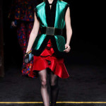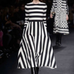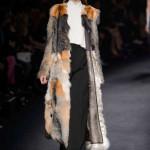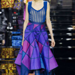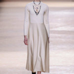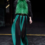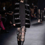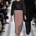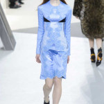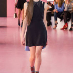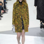 En una colección bastante comercial, Raf Simons presentó una propuesta que contrasta colores, sensualidad y texturas. Las faldas tableadas se recortan por encima de la rodilla con múltiples tajos, las camisas se llevan con collares de cadenas que parecen cuellos, el pelo va recogido tirante pero con extensiones hacia el frente. Las botas de cuero suben hasta las caderas, los abrigos de piel van hasta el piso. Es una femme fatale de Dior que se esconde debajo de sus sensuales prendas.