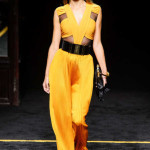 En un gran giro para la marca Olivier Rousteing se divirtió creando una propuesta con colores que estallan. Amarillo, violeta, fucsia, verde, rojo, contrastan con bordes en negro. Las cinturas se ajustan con anchos cinturones mientras las faldas van sueltas, al viento, con sutiles transparencias. Son los 70 y sus aires exóticos, el color block, las estampas psicodélicas que permiten que el diseñador deje un poco de lado las extravagancias de bordados que eran la firma de la marca cuando llegó.