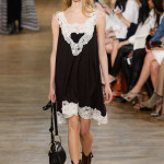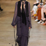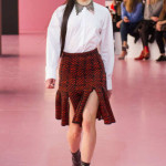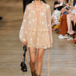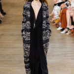 La directora creativa Clare Waight Keller le puso una onda folk a su colección para el invierno próximo. Con largas túnicas estampadas, ponchos tejidos con flecos, vestidos lenceros con encaje y patchwork en tapados y en pantalones. Hay una paleta neutra que contrasta con colores anaranjados y terroso, y un poco de azul. El resto es un duo blanco-negro, entre texturas y maxi vestidos que se vuelan suavemente con el viento.
