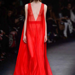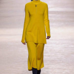 Una nueva diseñadora toma las riendas de Hermès: Nadège Vanhee-Cybulski. Su primera colección retoma los clásicos de la marca, con una silueta simple, que se ajusta en ciertas partes del cuerpo únicamente. Sumó ponchos, el abrigo it del invierno, tintes de rojo y de amarillo, y enteritos de cuero. Todo en línea con el lujo simple que propone desde hace décadas la marca. Un buen comienzo.
