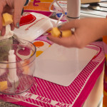 Con todo esto en sus respectivos bowls me dispuse a limpiar el pollo. Saqué la piel y toda la grasa que tenía, y lo corté en tiritas tal como indicaba la receta.