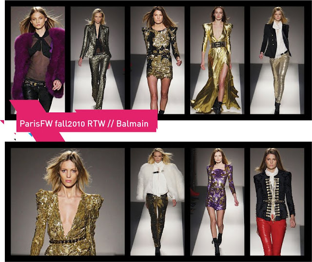 Balmain retoma los hombros elevados, el glamour y mucho rock n’ roll glitz. Pantalones sequined, vestidos dorados, cuero, pieles y transparencias. La idea del diseñador Christophe Decarnin es salir con todo. Estos looks, aptos solo para osadas. Si no te animás a los escotes vertiginosos y las siluetas ajusadas, podés probar con un saco en negro con hombreras y chupines bien rocker.